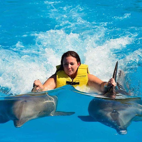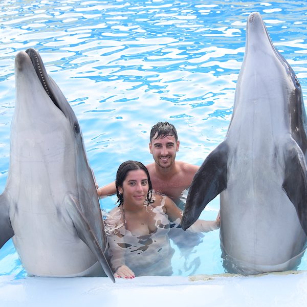 Nuotare con i delfini a Sharm El Sheikh in piscina per 15 o 30 minuti con addestratori professionisti, un’esperienza emozionante e sicura per adulti e bambini.